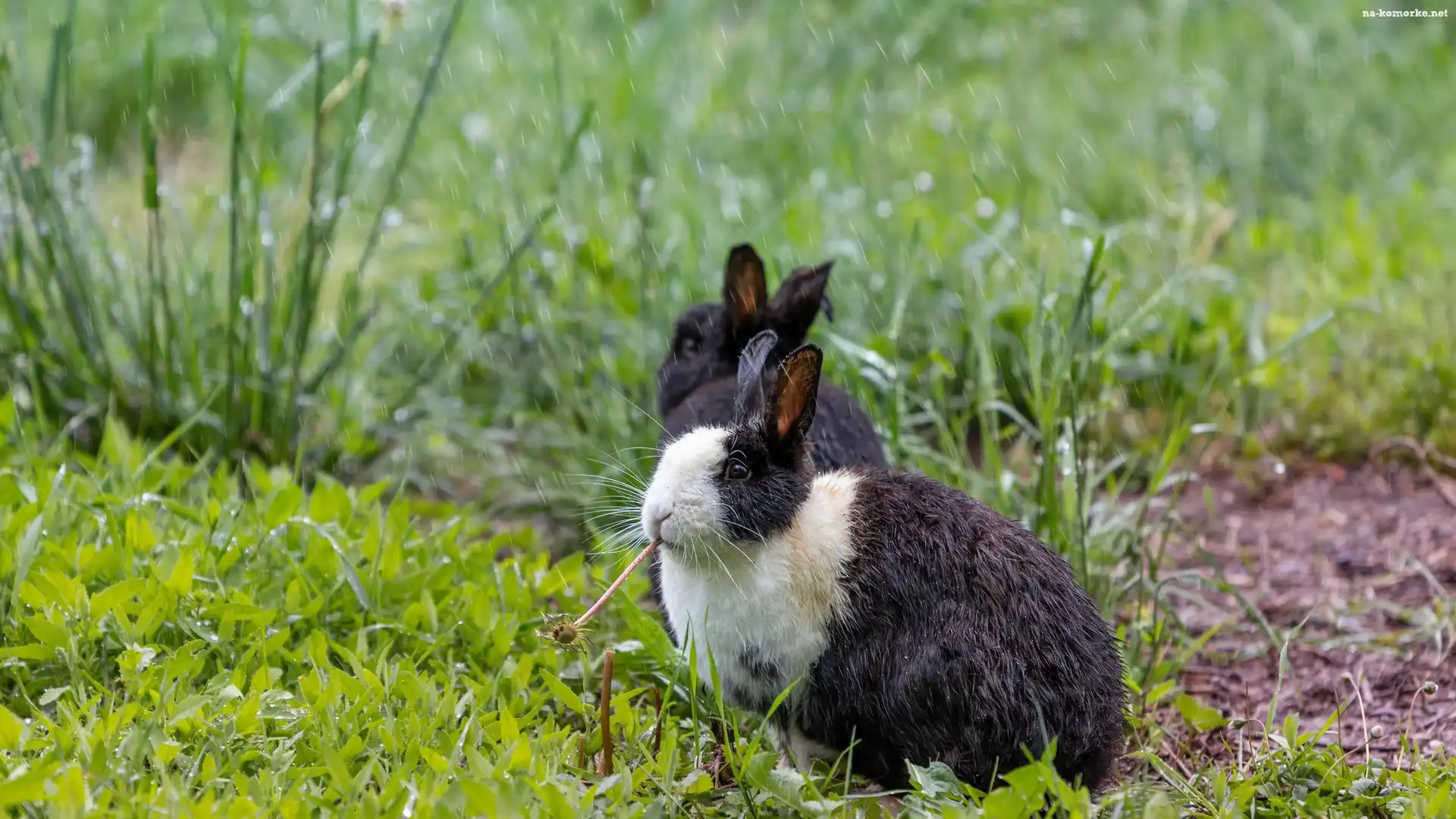Dwa, Deszcz, Króliki, Trawa na Komórkę