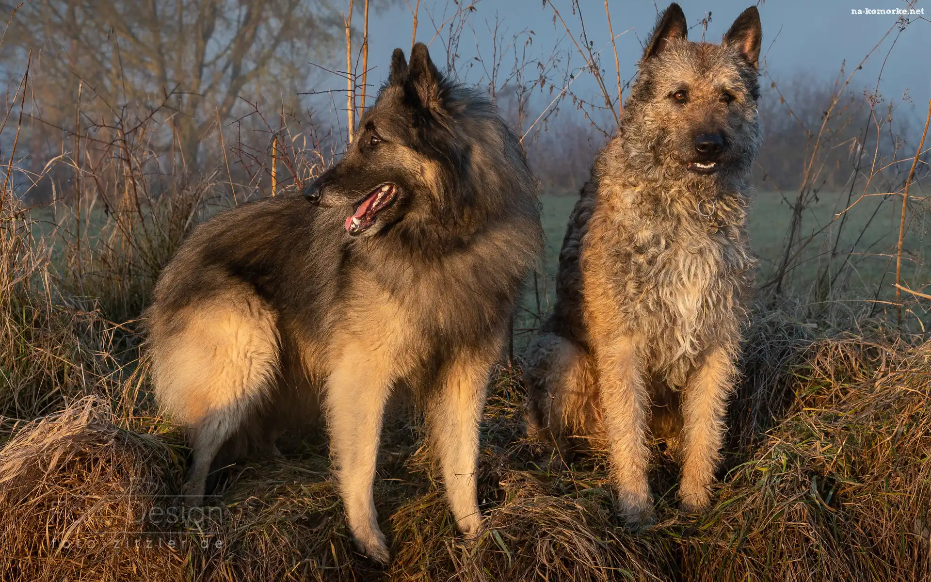 Dwa, Owczarek belgijski tervueren, Owczarek belgijski laekenois, Psy, Trawa na Komórkę