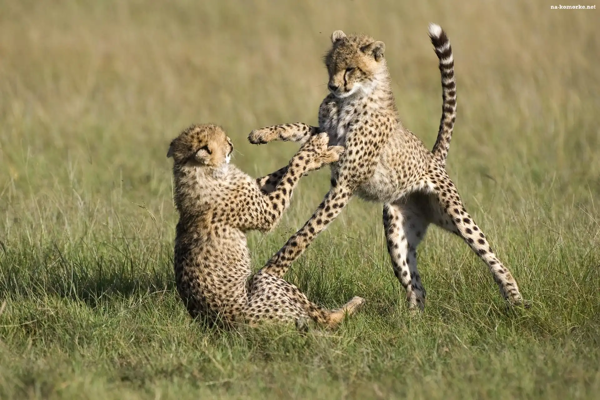 Dwa, Trawa, Młode, Gepardy na Komórkę