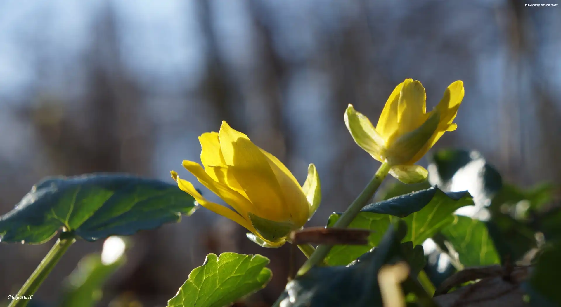 Dwa, Ziarnopłon wiosenny, Żółte, Kwiaty na Komórkę