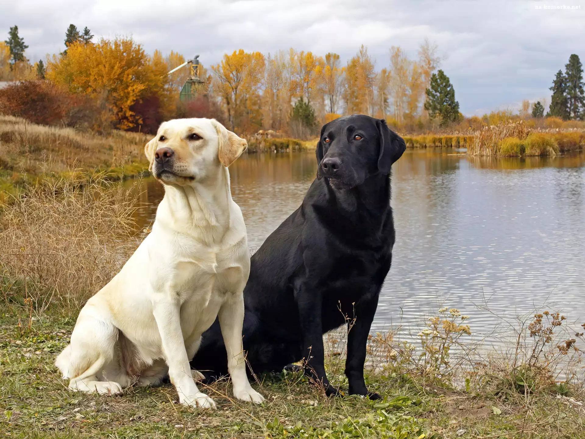 Dwa, Jezioro, Psy, Labradory na Komórkę