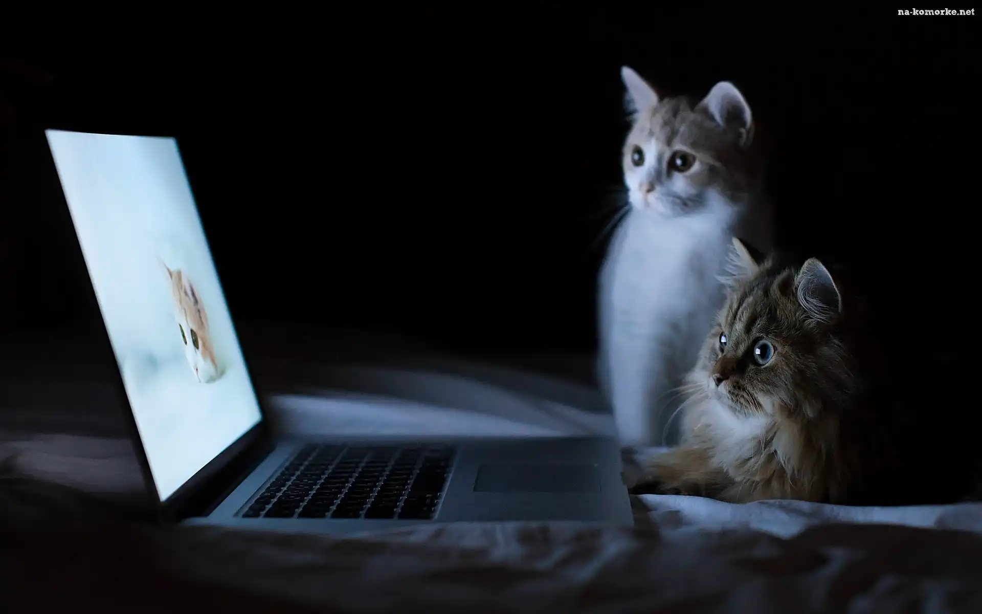 Dwa, Laptop, Słodkie, Kotki na Komórkę