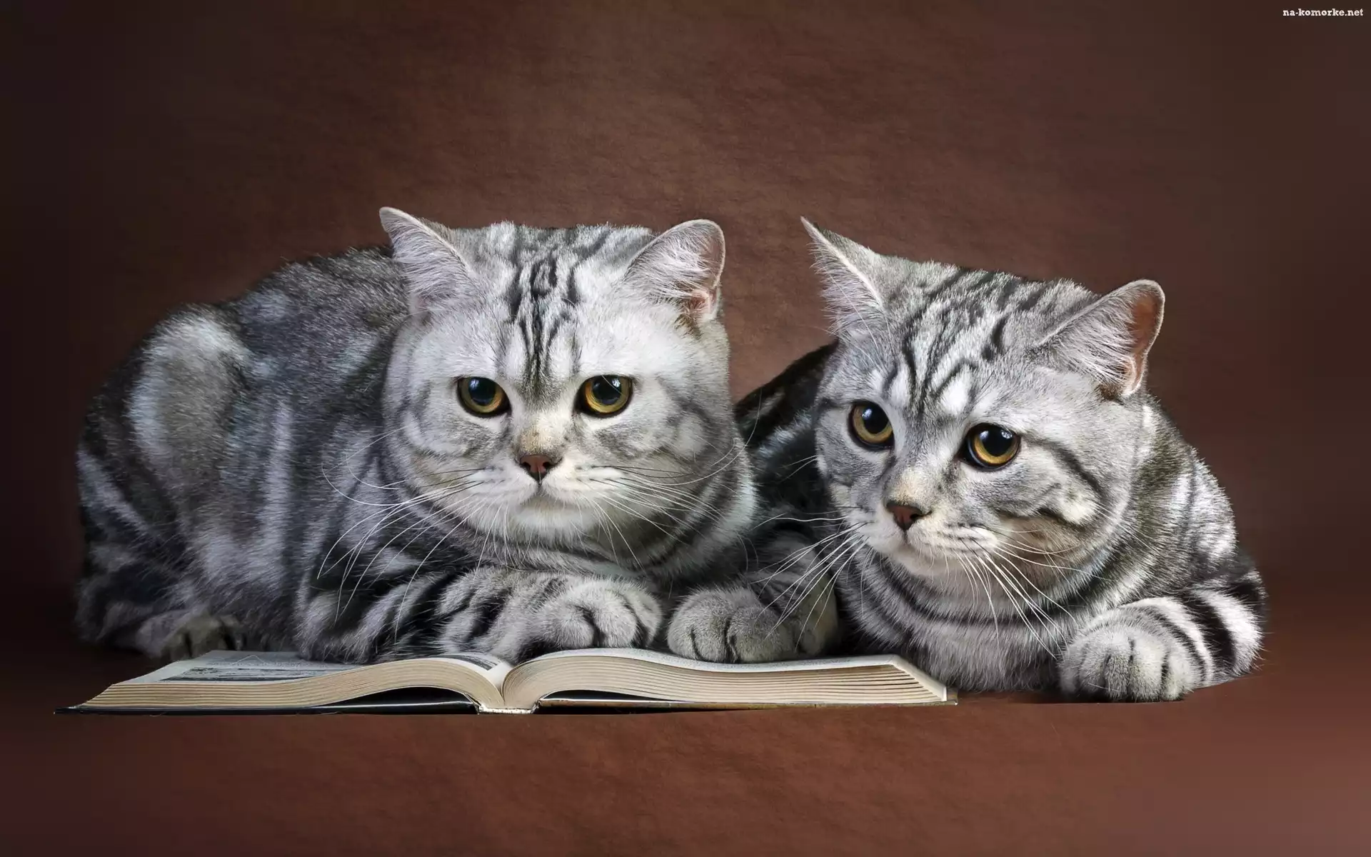 Dwa, Książka, Szare, Kotki na Komórkę