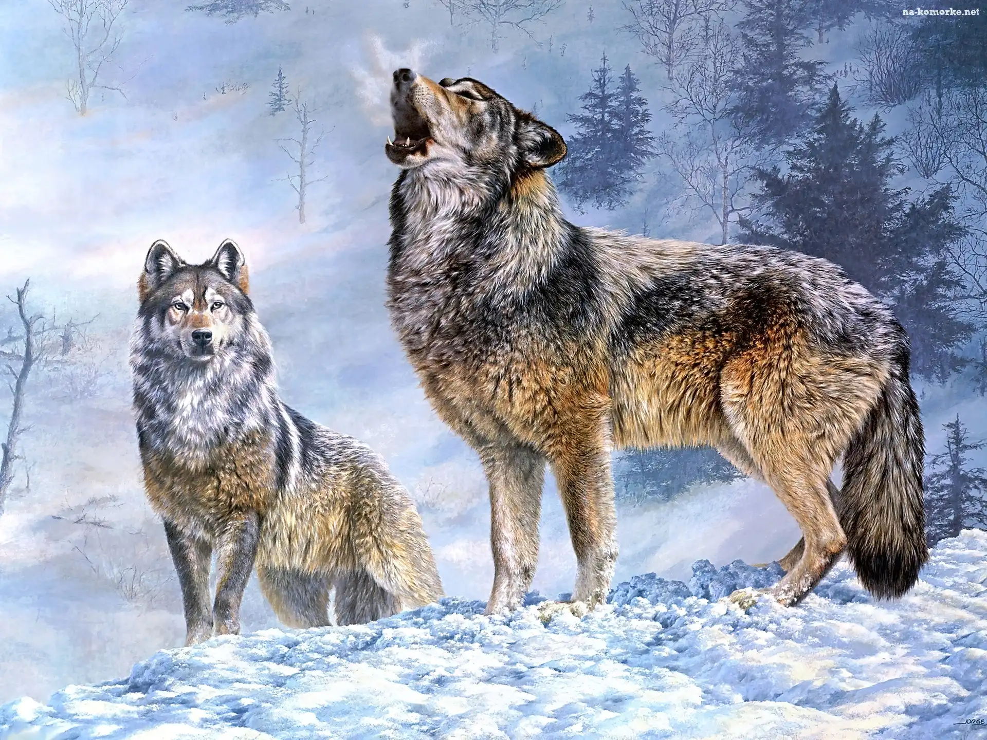 Dwa, Reprodukcje Obrazów, Wilki, Zima na Komórkę