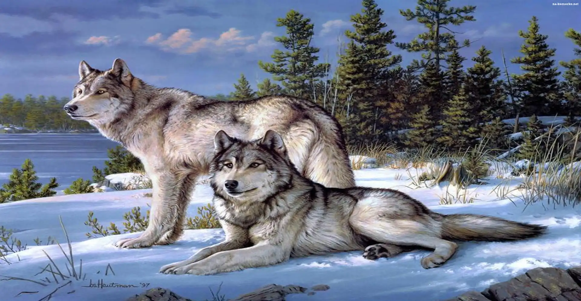 Dwa, Zima, Wilki, Drzewa na Komórkę