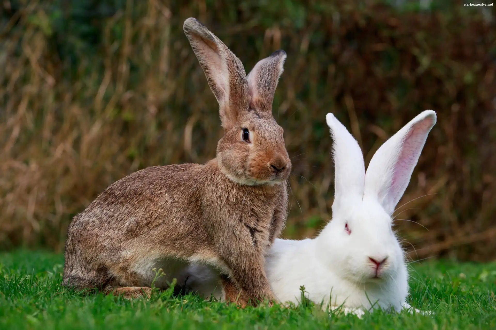 Dwa, Rozmycie, Zające, Trawa na Komórkę