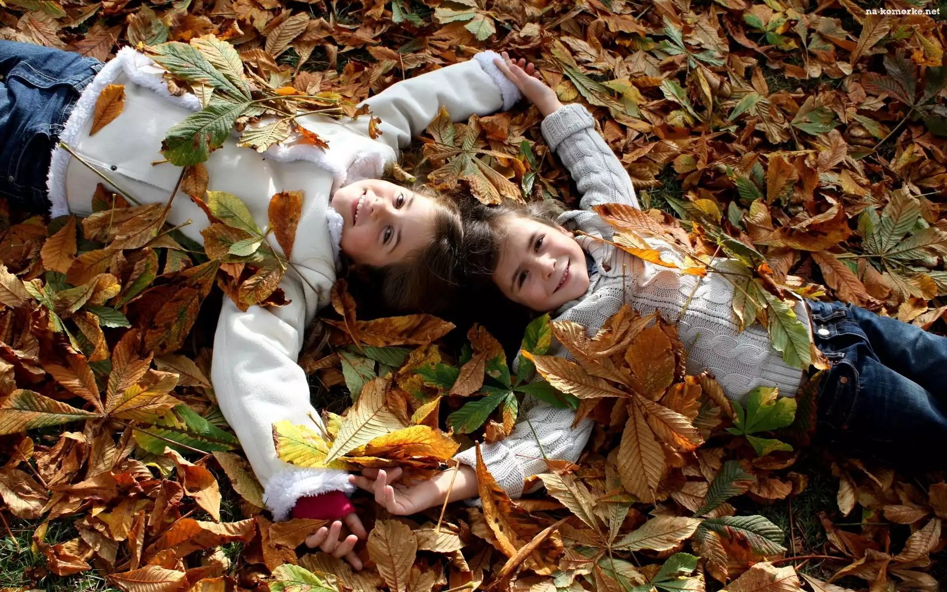Dwie, Jesień, Dziewczynki, Liście na Komórkę