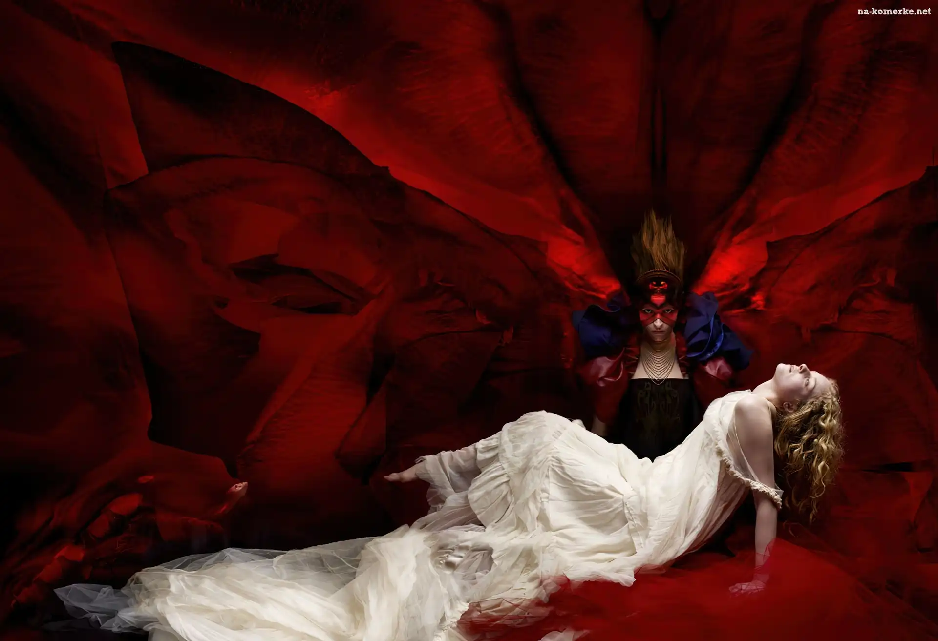 Dwie, Czerwień, Kobiety, Biel na Komórkę