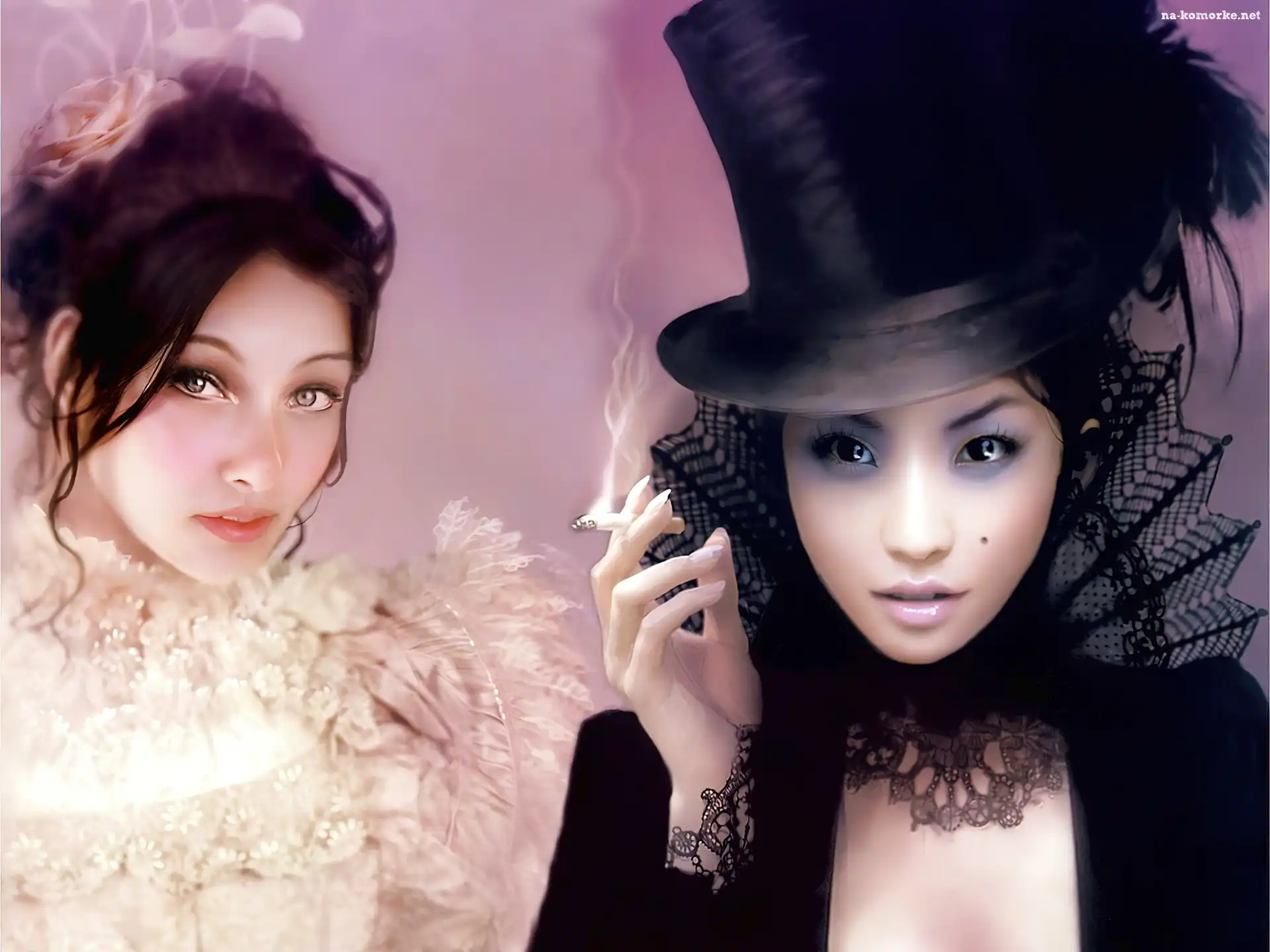 Dwie, Papieros, Kobiety, Cylinder na Komórkę