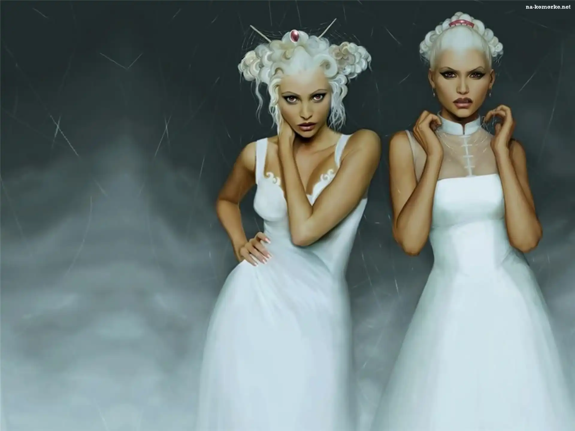 Dwie, Suknie, Kobiety, Białe na Komórkę