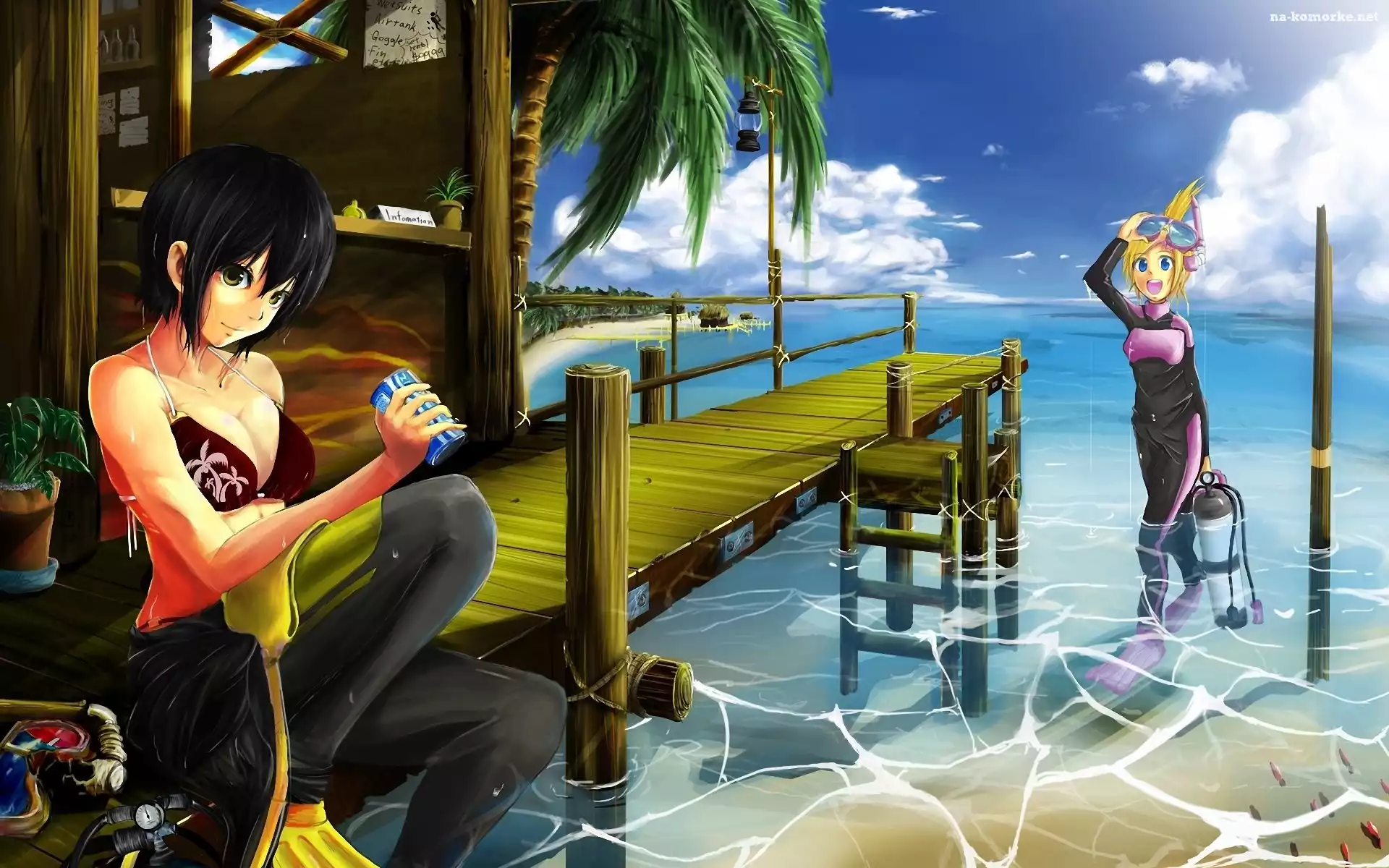 Dwie, Pomost, Morze, Nurkowanie, Lato, Dziewczyny na Komórkę