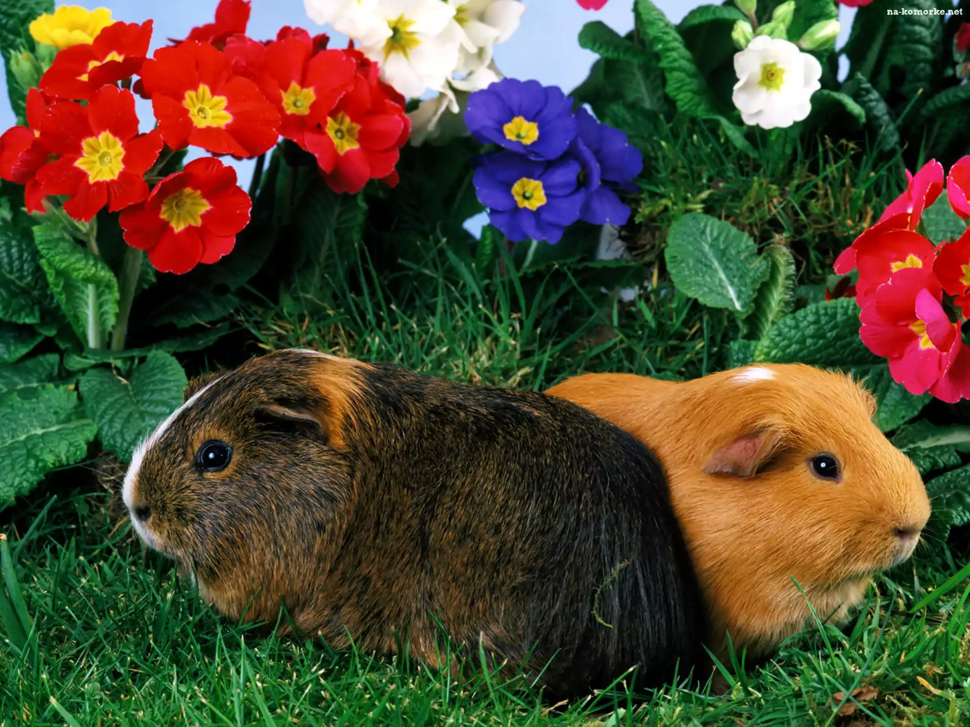 Dwie, Kwiaty, Świnki, Trawa na Komórkę