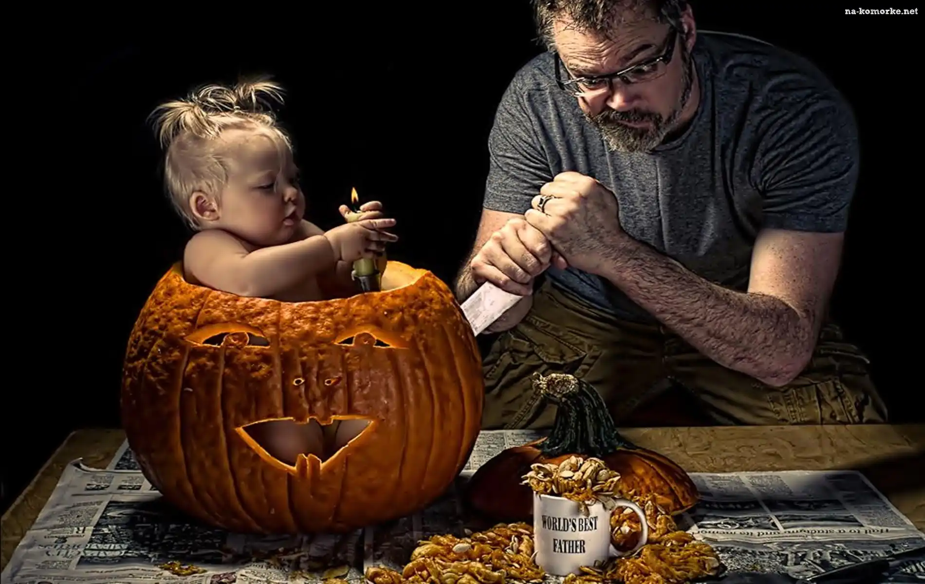 Mężczyzna, Dynia, Dziecko na Komórkę