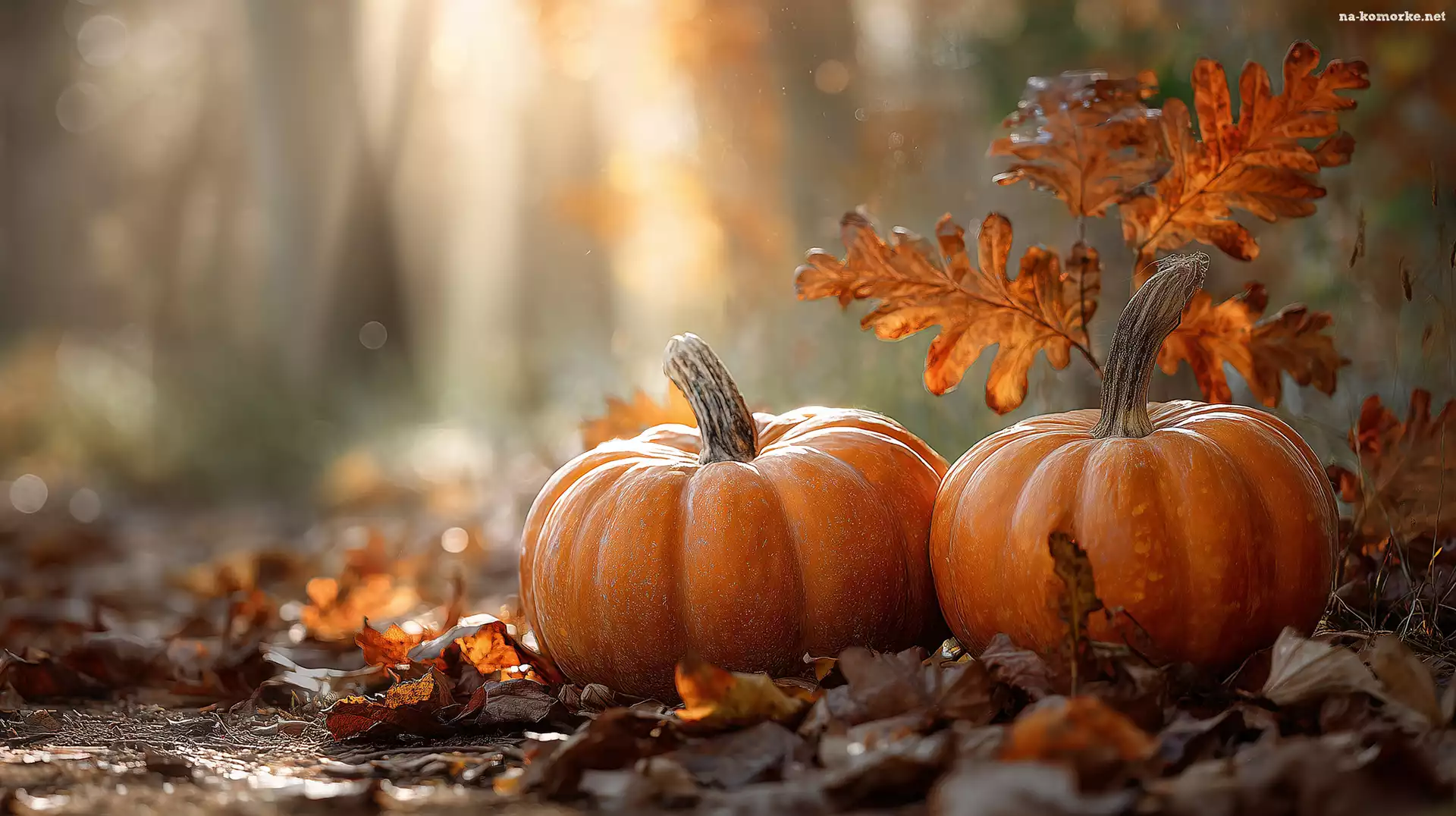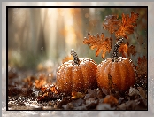 Dwie, Jesienne, Liście, Dynie, Grafika AI na Komórkę