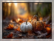 Dwie, Suche, Liście, Dynie, Grafika AI na Komórkę