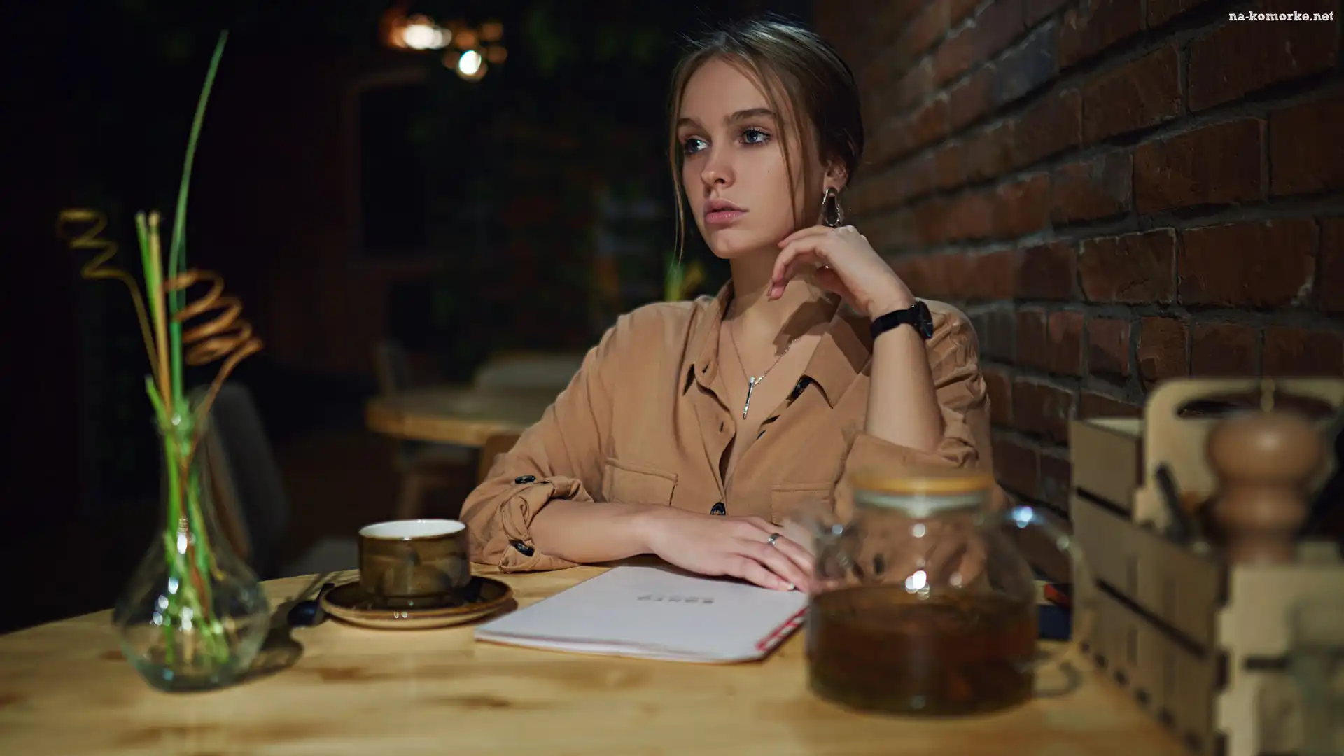 Kobieta, Dzbanek, Herbata, Szatynka, Stół, Filiżanka, Wazon na Komórkę