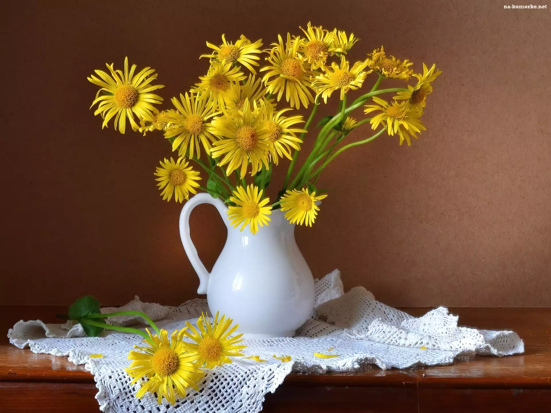 Dzbanek, Żółtych, Bukiecik, Kompozycja, Kwiatów, Serweta na Komórkę