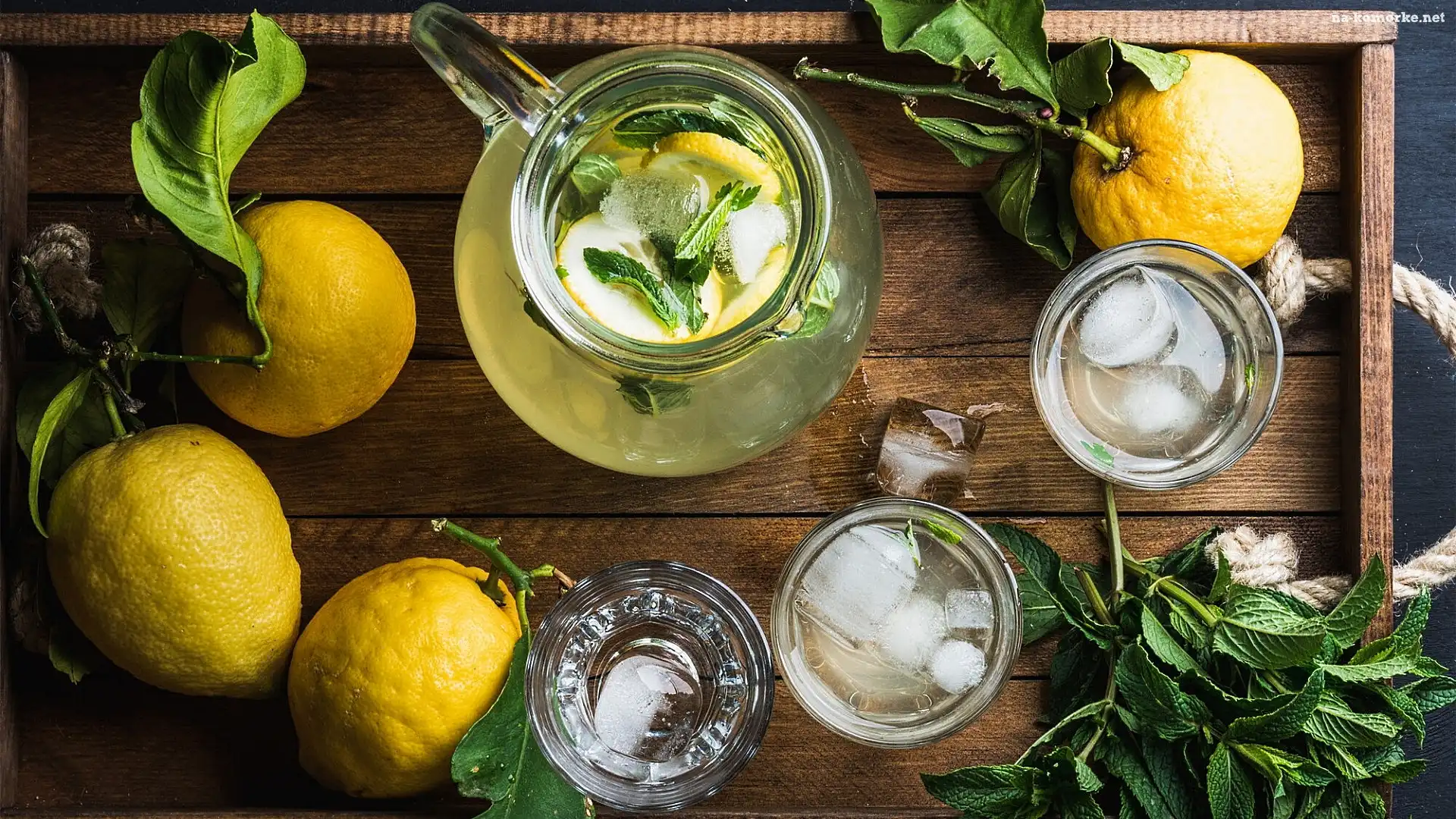 Cytryny, Dzbanek Szklanki, Lemoniada, Taca, Kostki lodu, Mięta na Komórkę