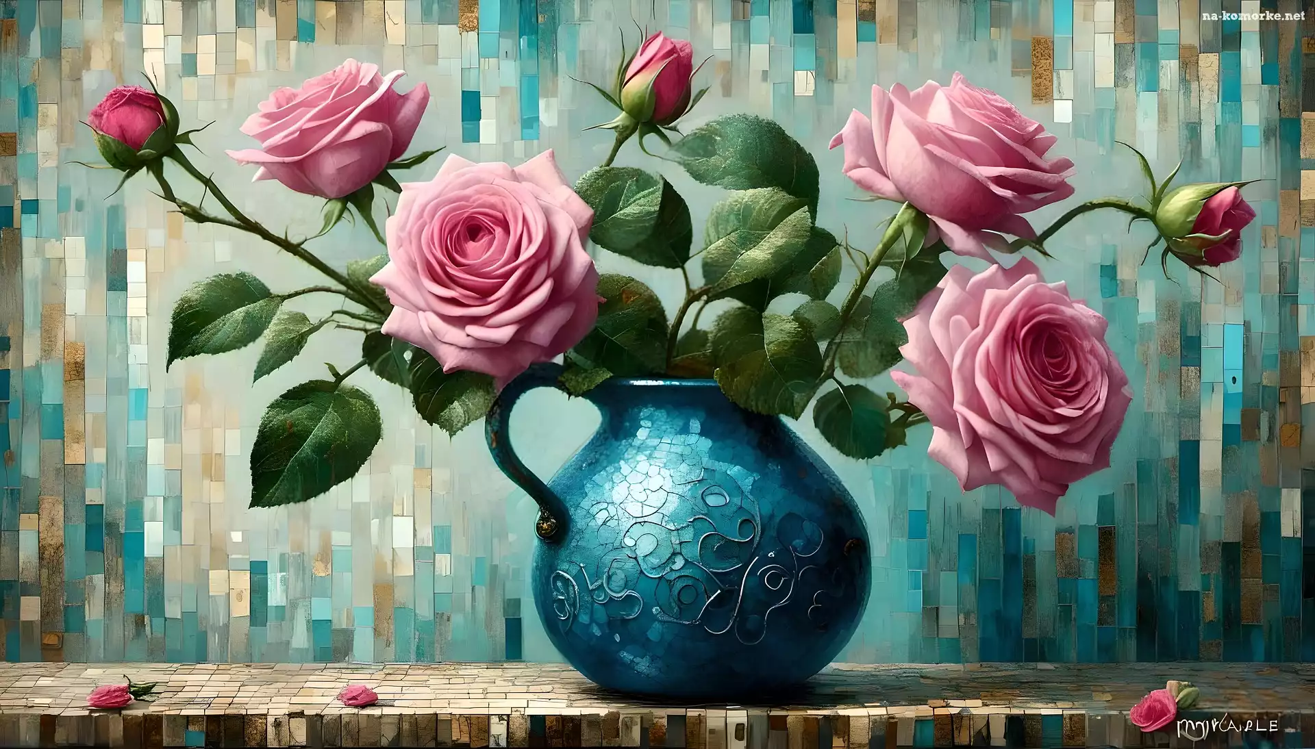 Różowe, Róże, Grafika, Dzbanek na Komórkę