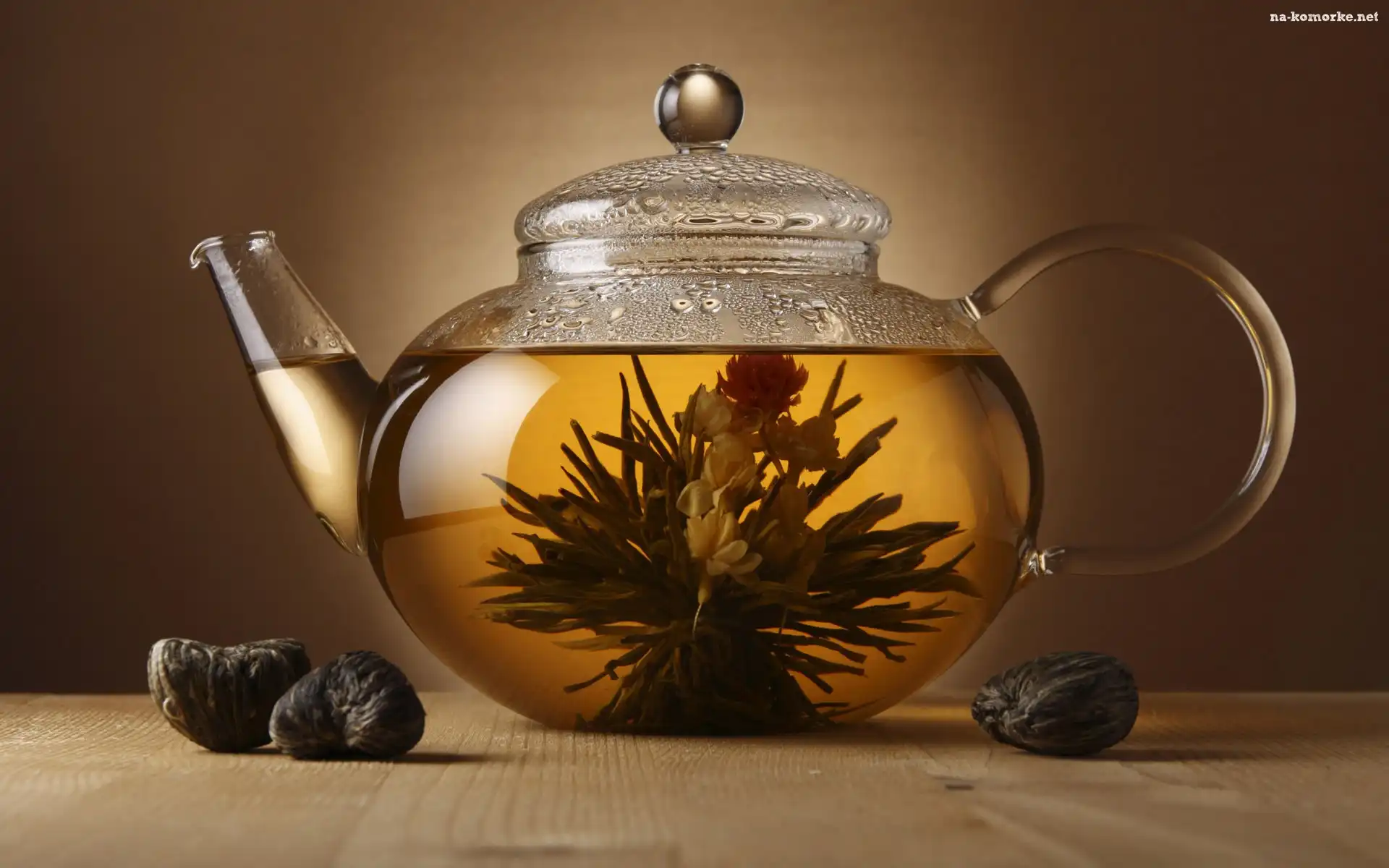 Dekoracja, Szklany, Dzbanek, Herbata, Kwiaty na Komórkę