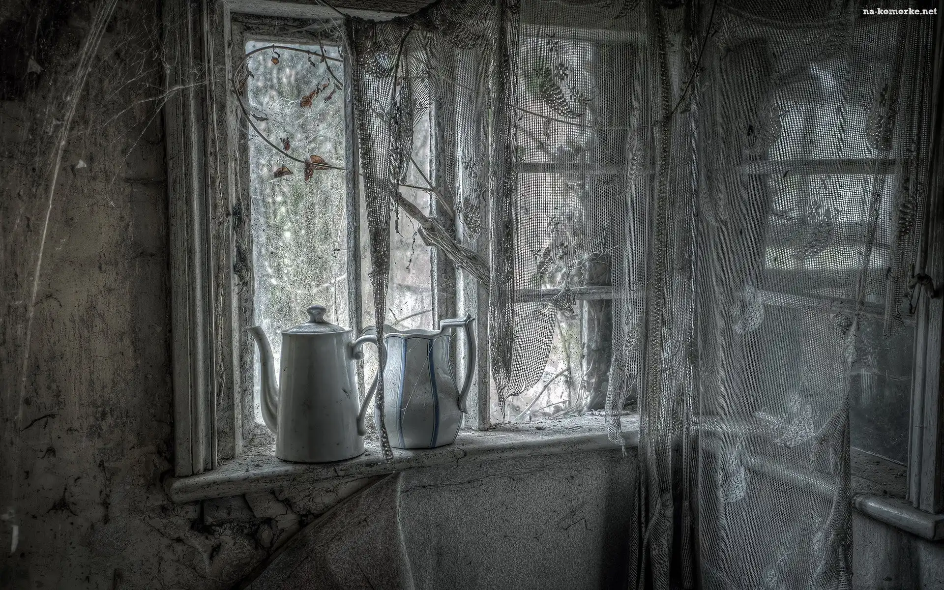 Dzbanki, Zaniedbany, Pokój, Firanki, Okno na Komórkę