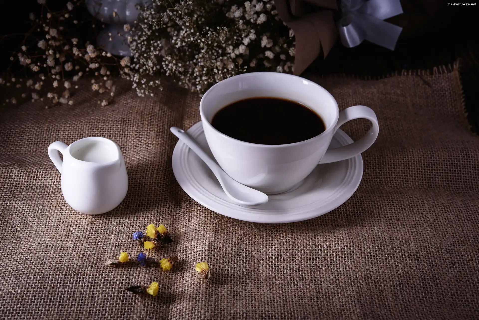 Dzbanuszek, Filiżanka, Kawa, Kwiaty, Mleko, Suche na Komórkę