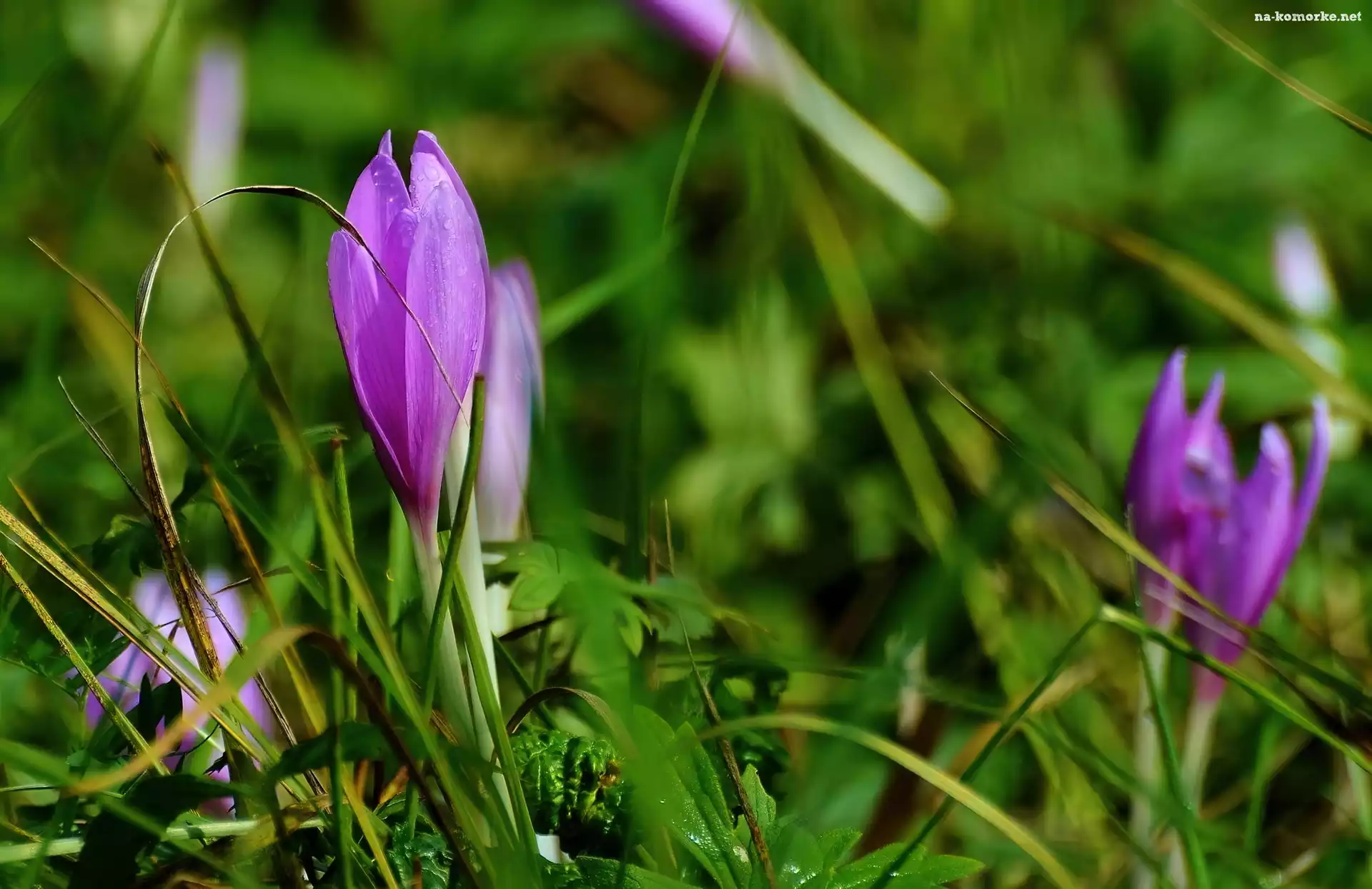 Krokusy, Źdźbła, Trawy na Komórkę