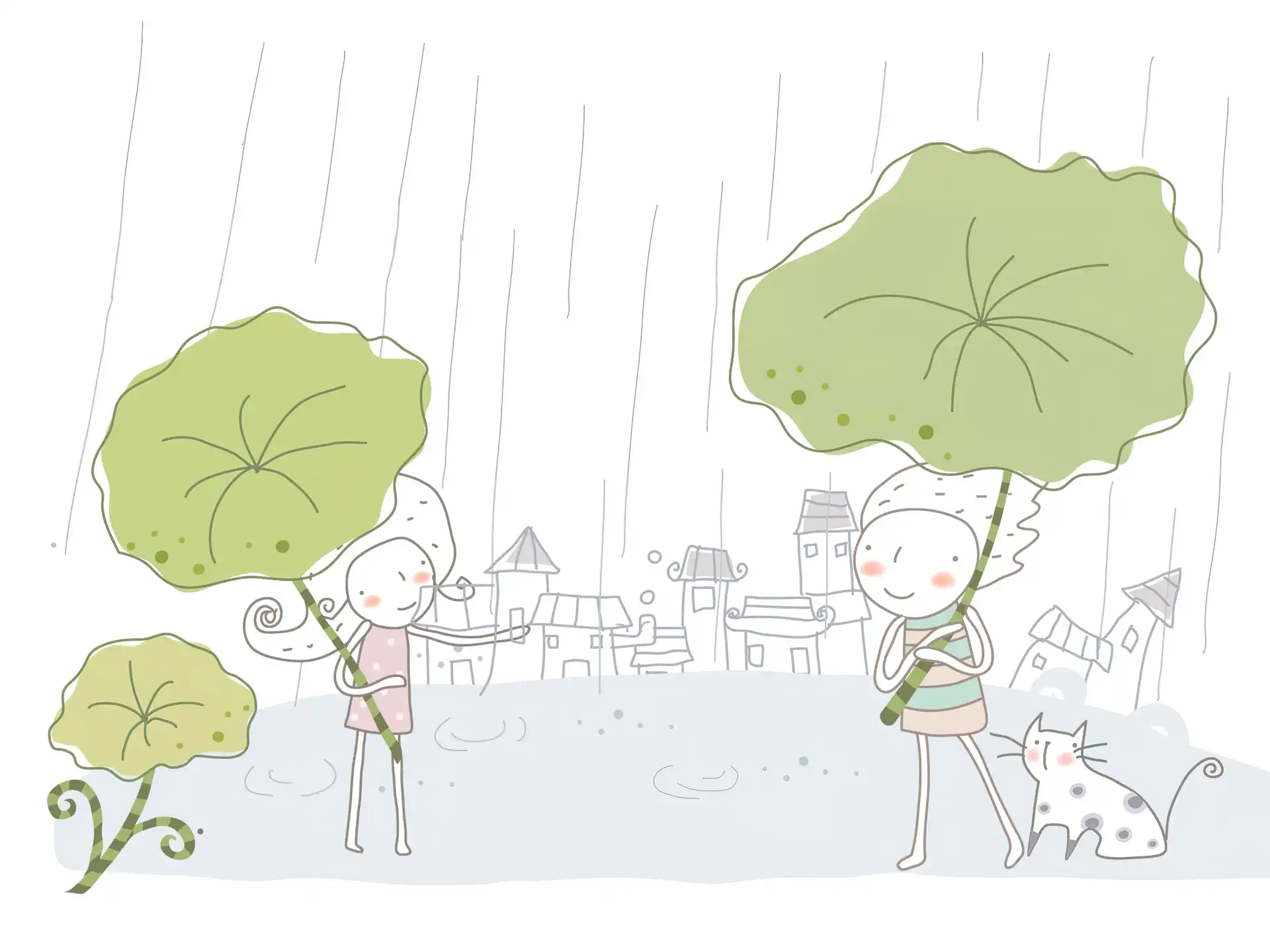 Dzieci, Kotek, Deszcz, Liście na Komórkę