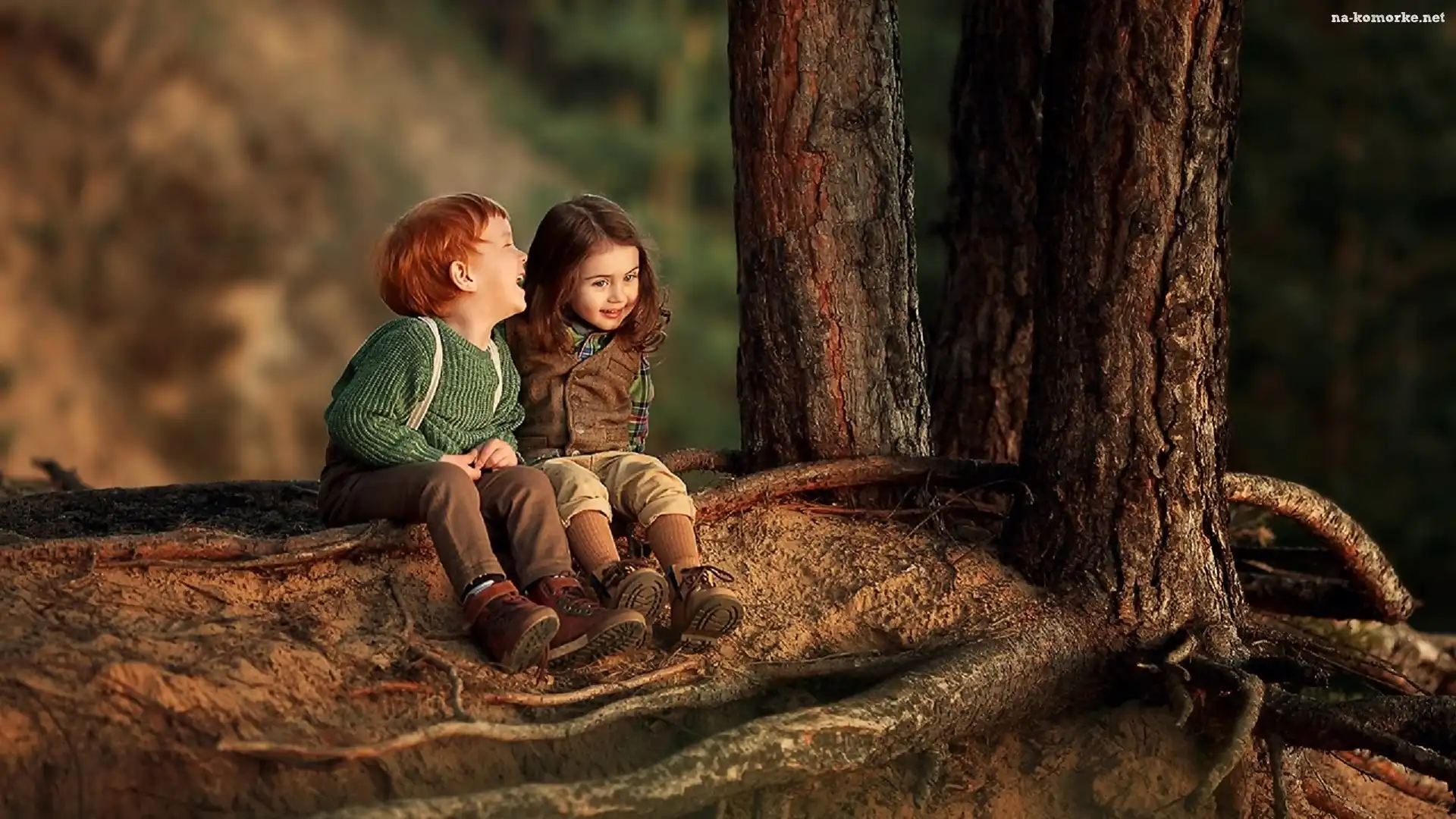 Dzieci, Radość, Drzewa, Śmiech na Komórkę