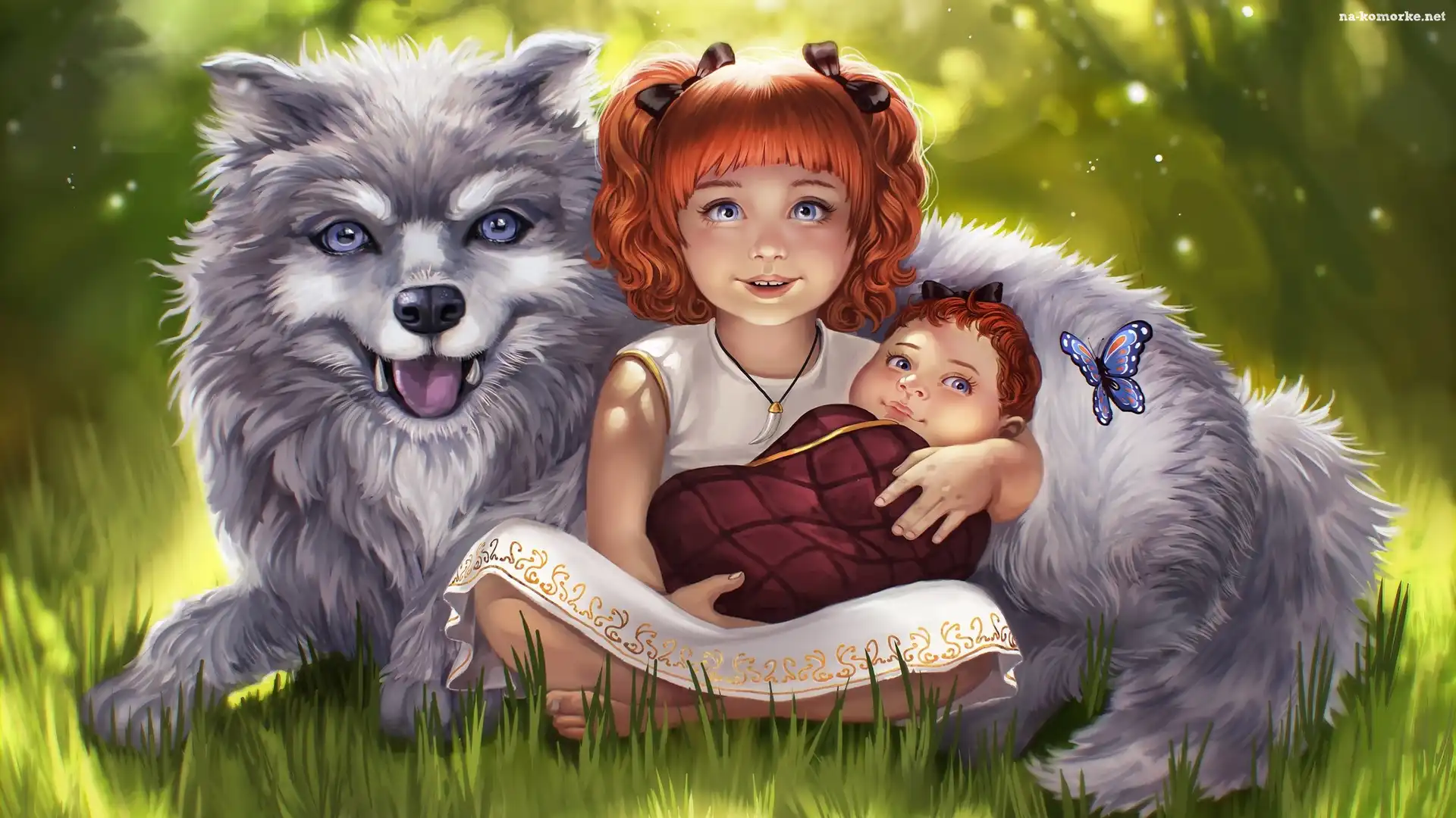 Dzieci, Grafika 2D, Pies, Motyl na Komórkę