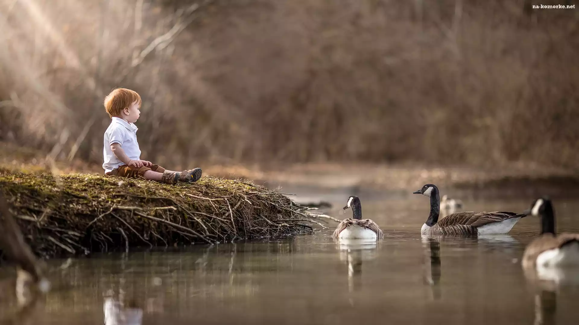 Dziecko, Woda, Gęsi, Bernikle kanadyjskie na Komórkę