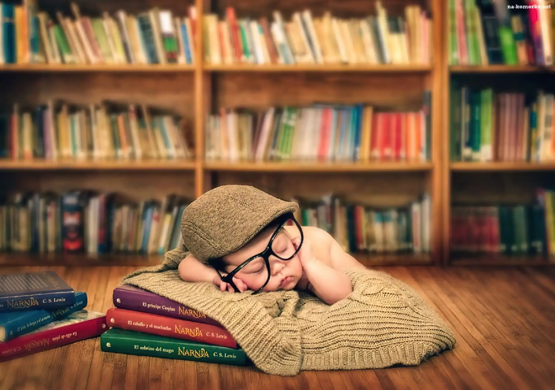 Śpiące, Książki, Dziecko, Okulary na Komórkę