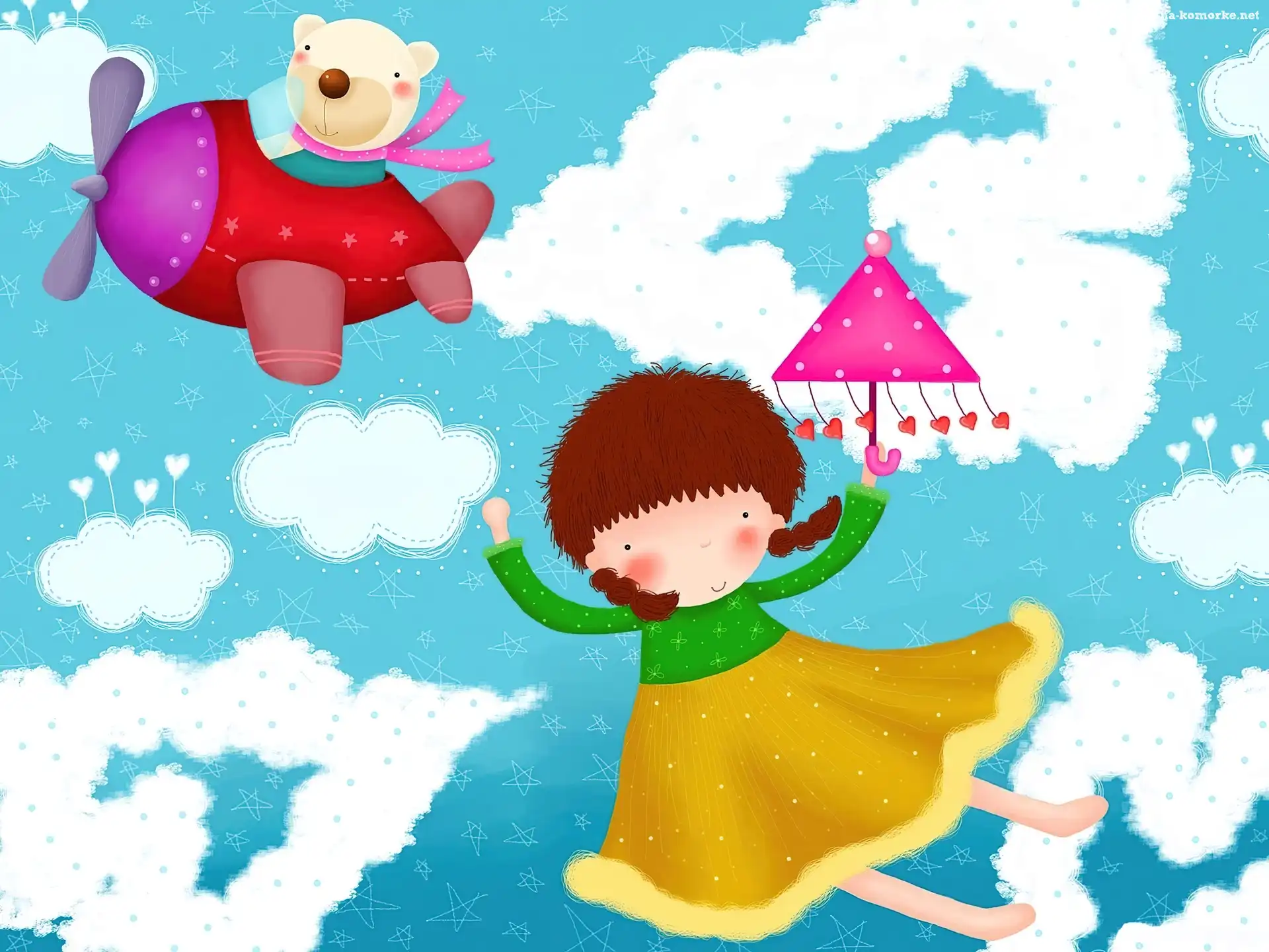 Dziecko, Parasol, Misiu, Samolot na Komórkę