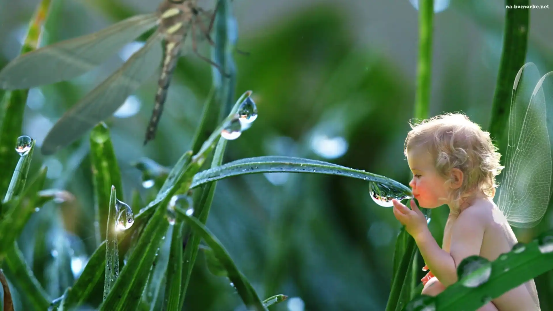 Dziecko, Rosa, Motylek, Trawa na Komórkę