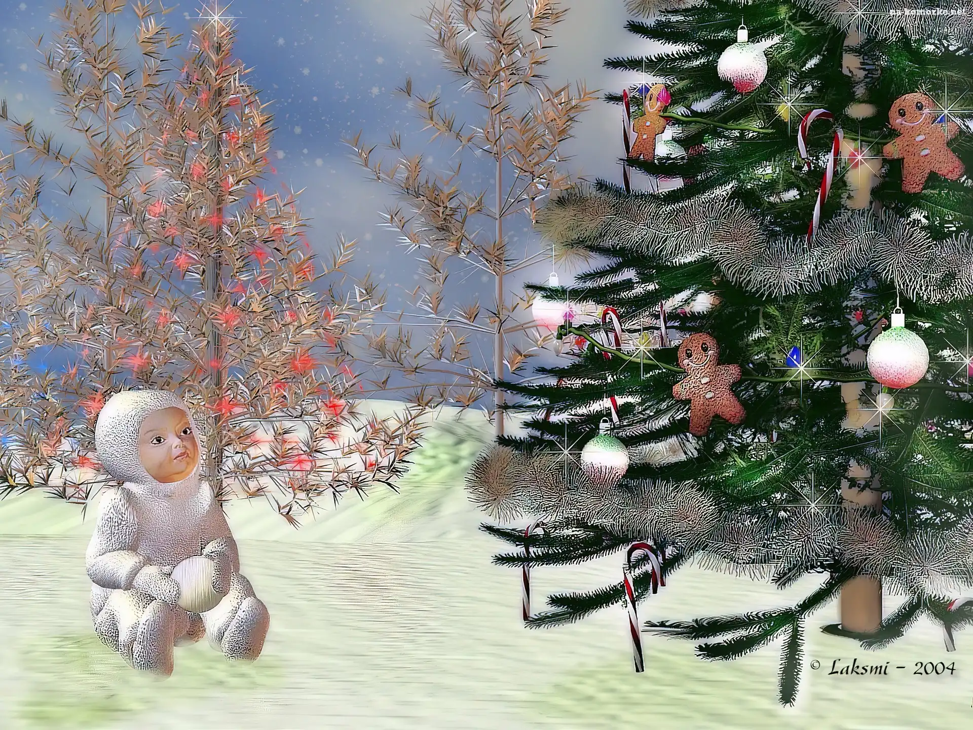 Dziecko, 3D, Śnieg, Choinka na Komórkę