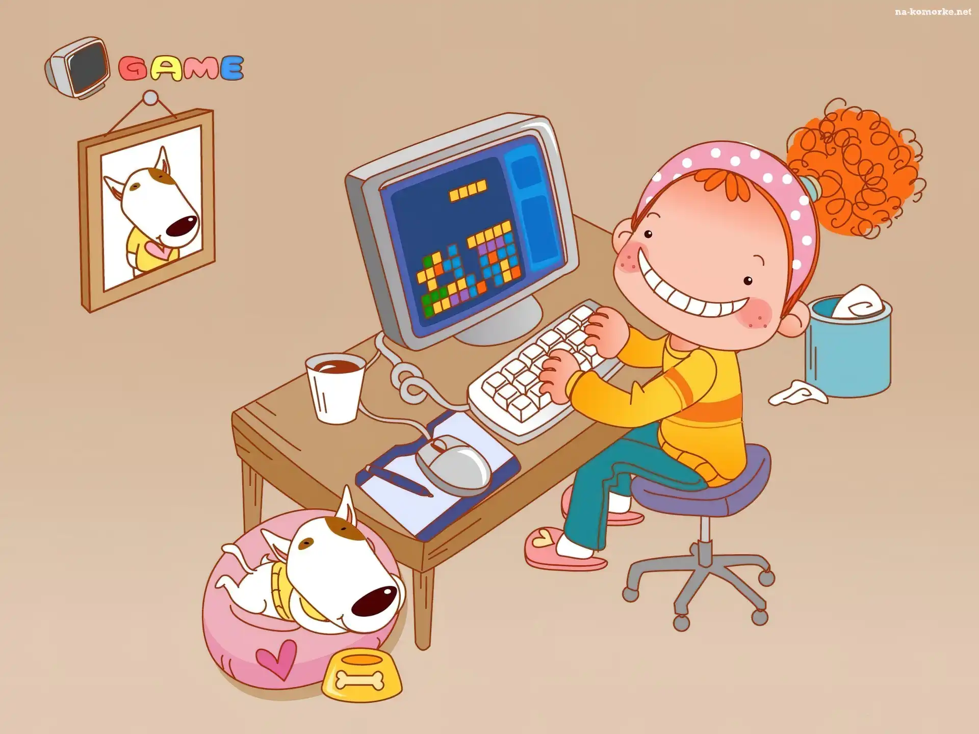 Dziecko, Gra, Pies, Komputer na Komórkę