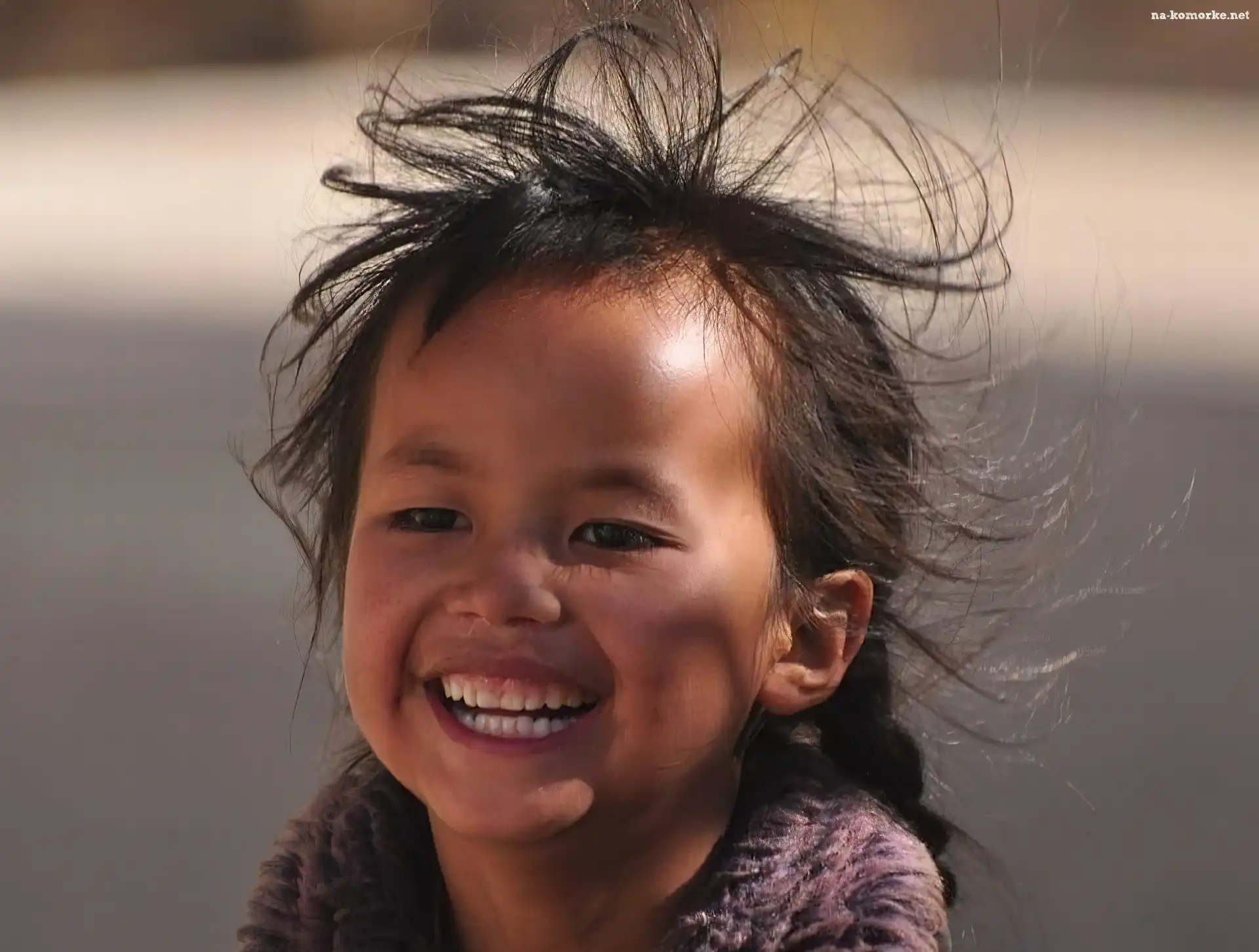 Dziecko, Włosy, Uśmiech, Rozwiane na Komórkę