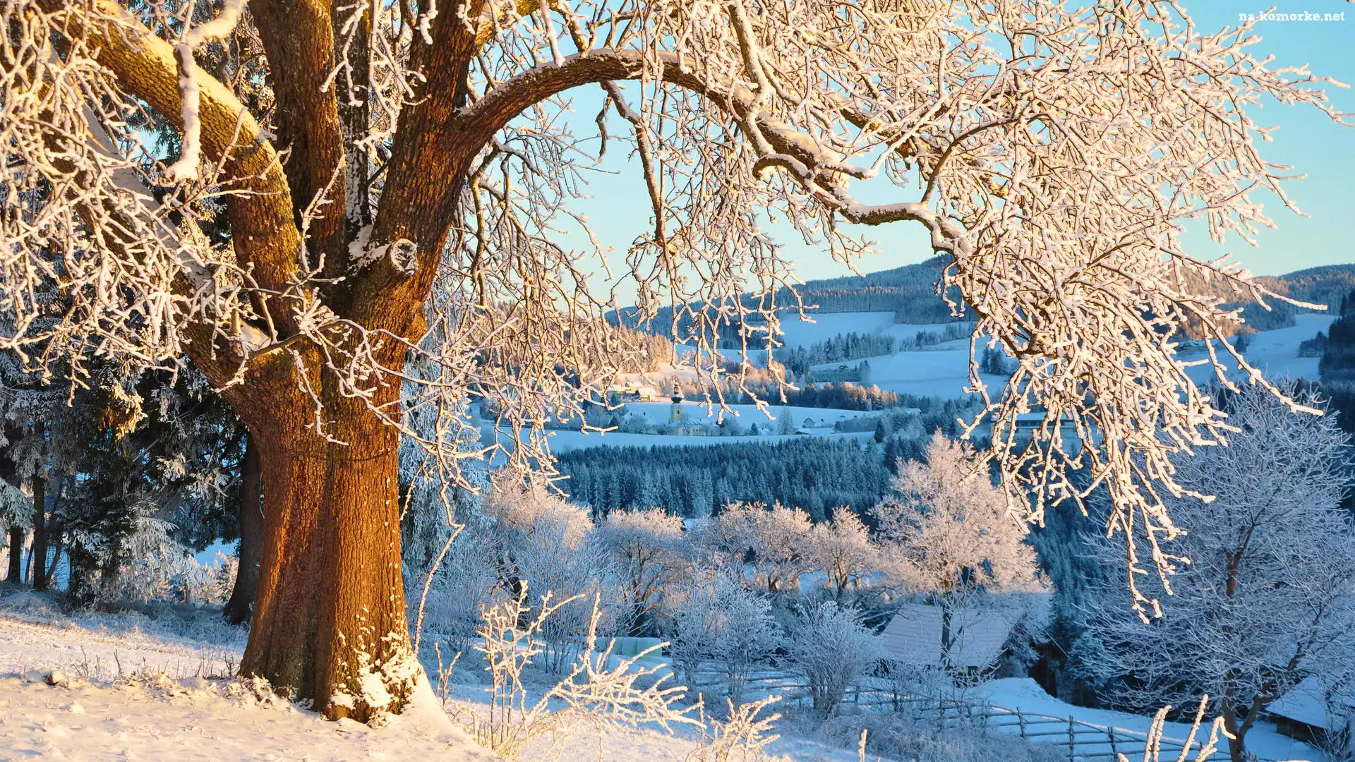 Dzień, Zima, Oszronione, Drzewa, Słoneczny na Komórkę