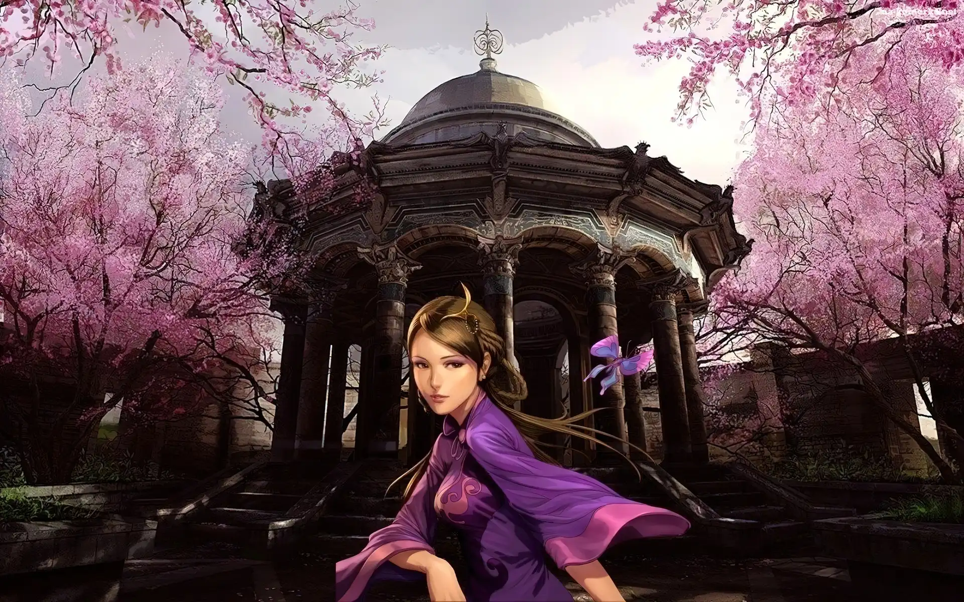 Dziewczyna, Drzewa, Altanka, Kwitnące na Komórkę