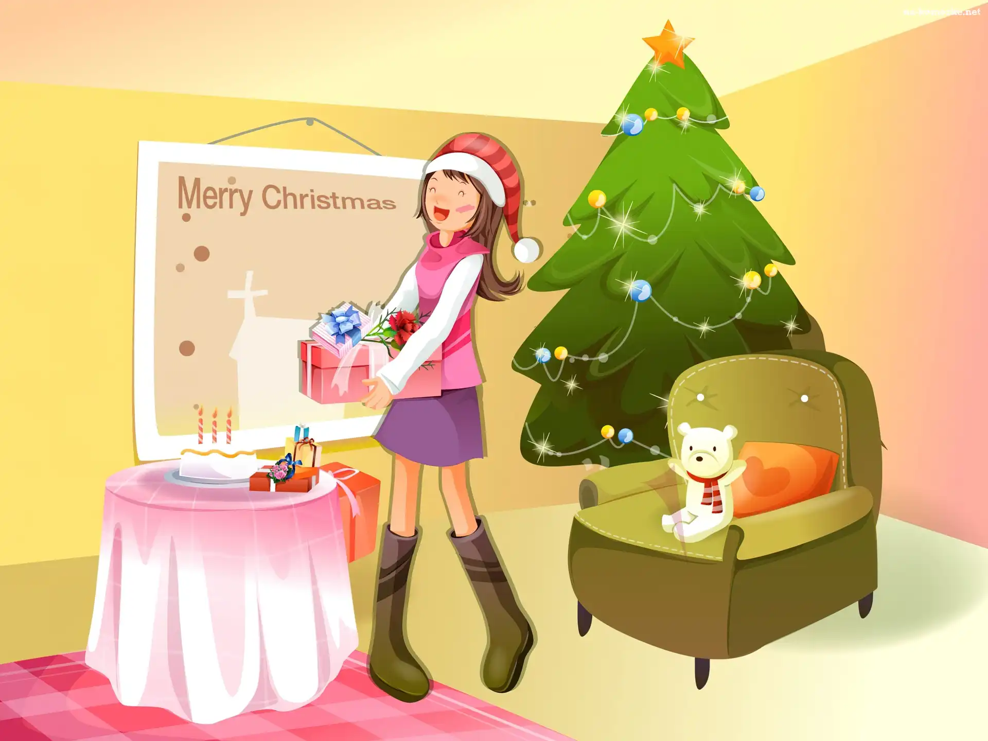 Dziewczyna, Misio, Choinka, Prezenty na Komórkę
