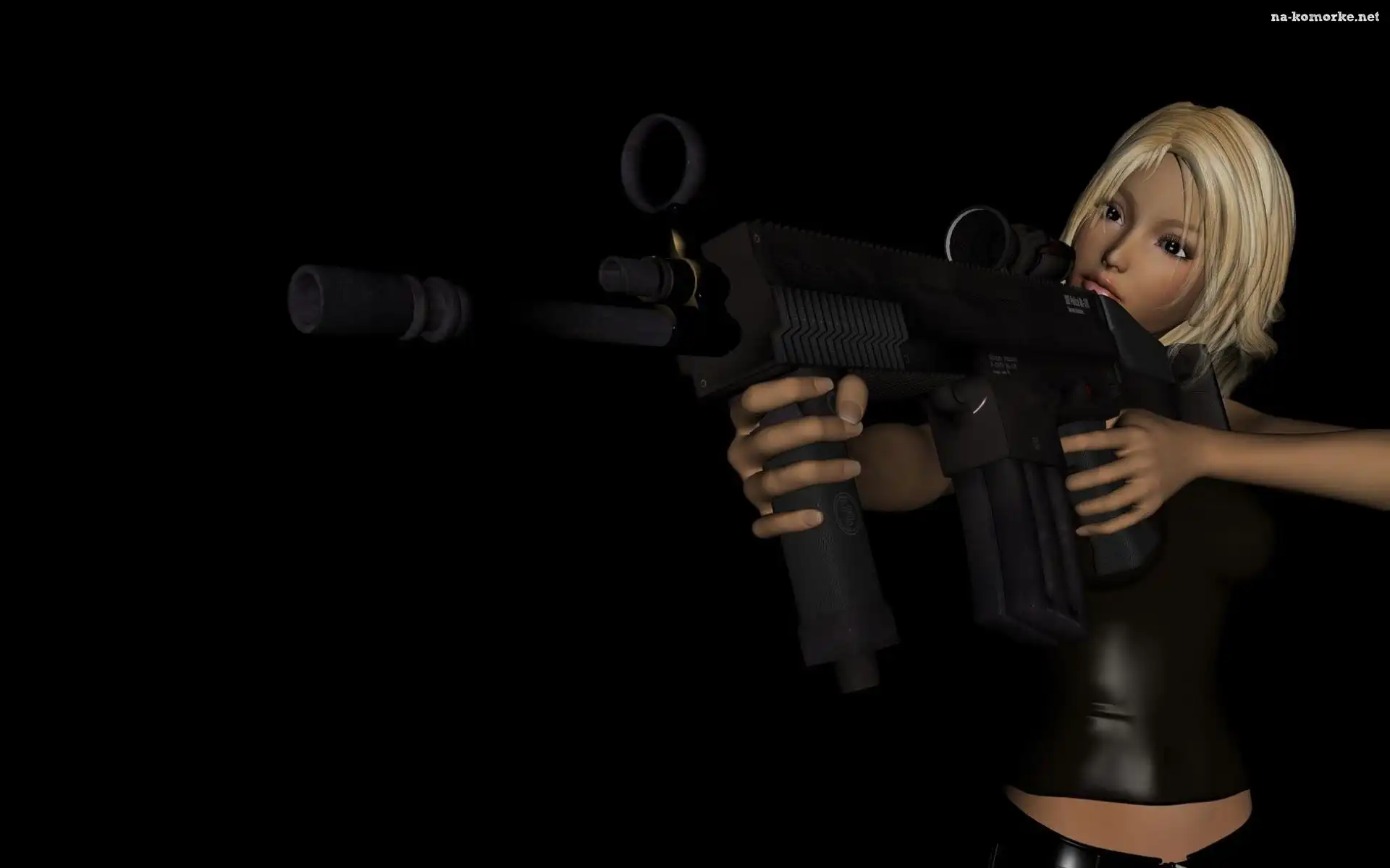 Dziewczyna, Karabin, Czarny, Strój na Komórkę