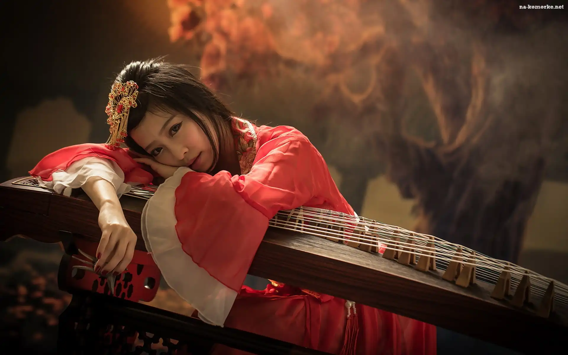 Dziewczyna, Instrument, Czerwona, Sukienka na Komórkę
