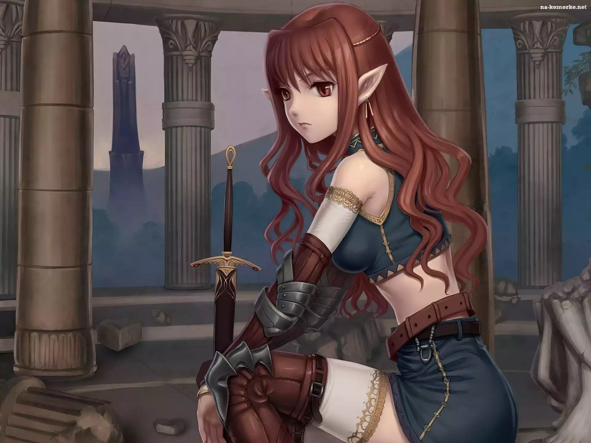 Dziewczyna, Filary, Elf, Miecz na Komórkę