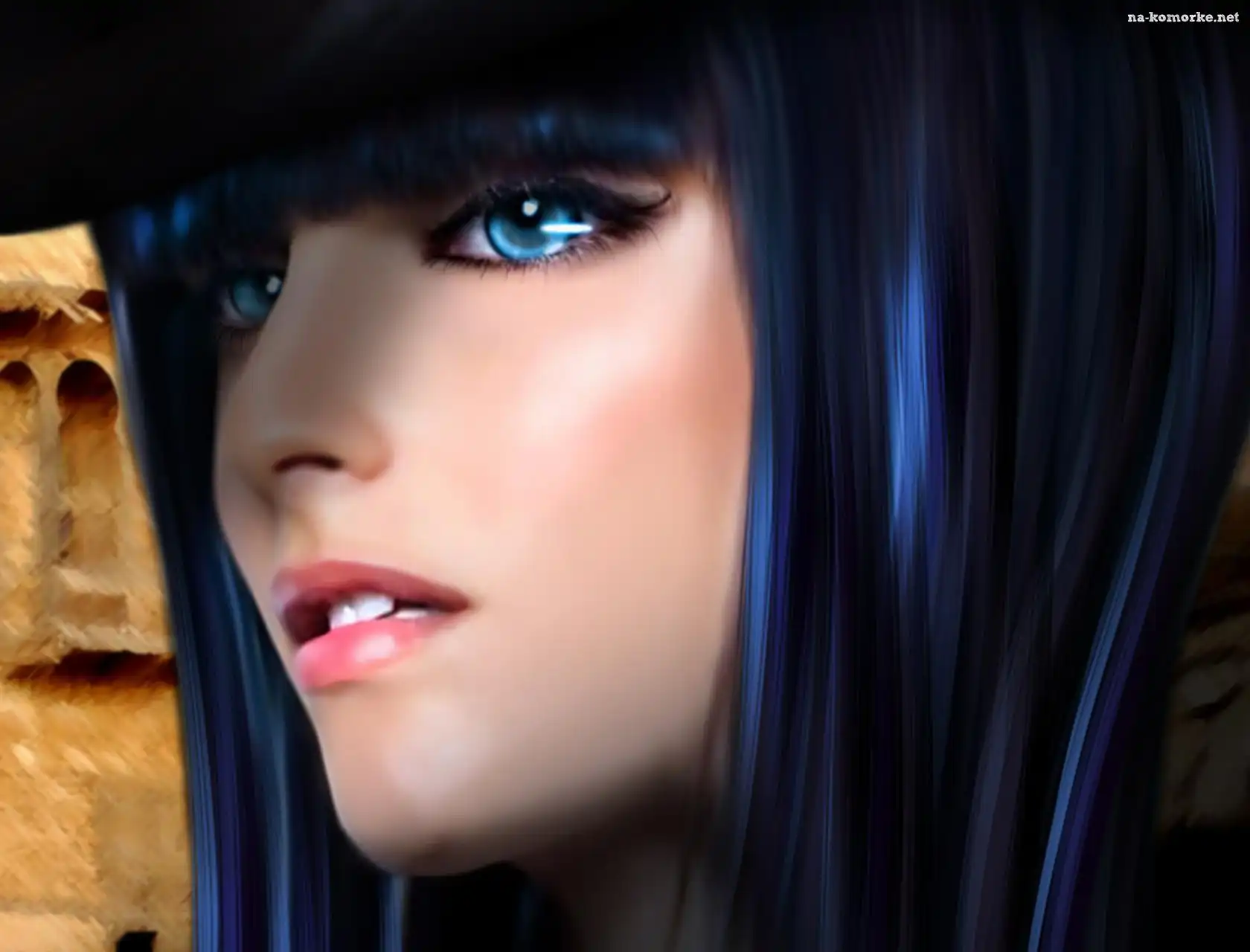 Dziewczyna, Twarz, Granatowe, Włosy na Komórkę