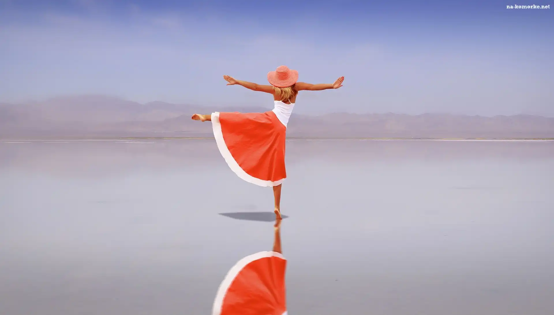 Dziewczyna, Odbicie, Kapelusz, Woda na Komórkę