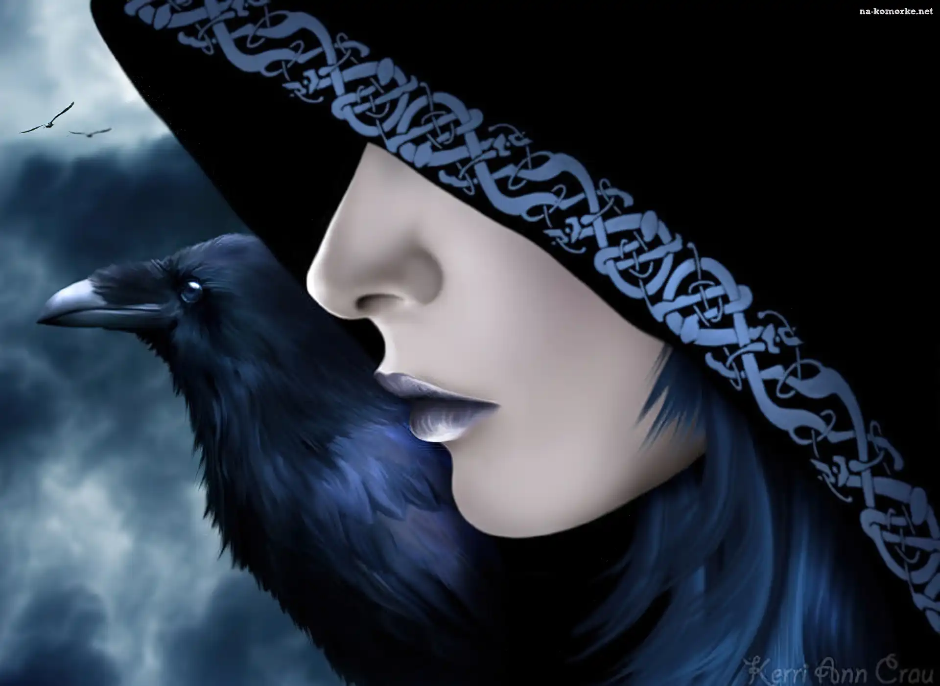 Dziewczyna, Czerń, Kaptur, Kruk na Komórkę