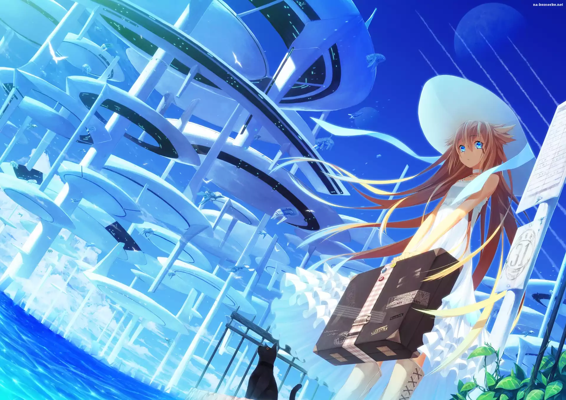 Dziewczyna, Anime, Kot, Walizka na Komórkę