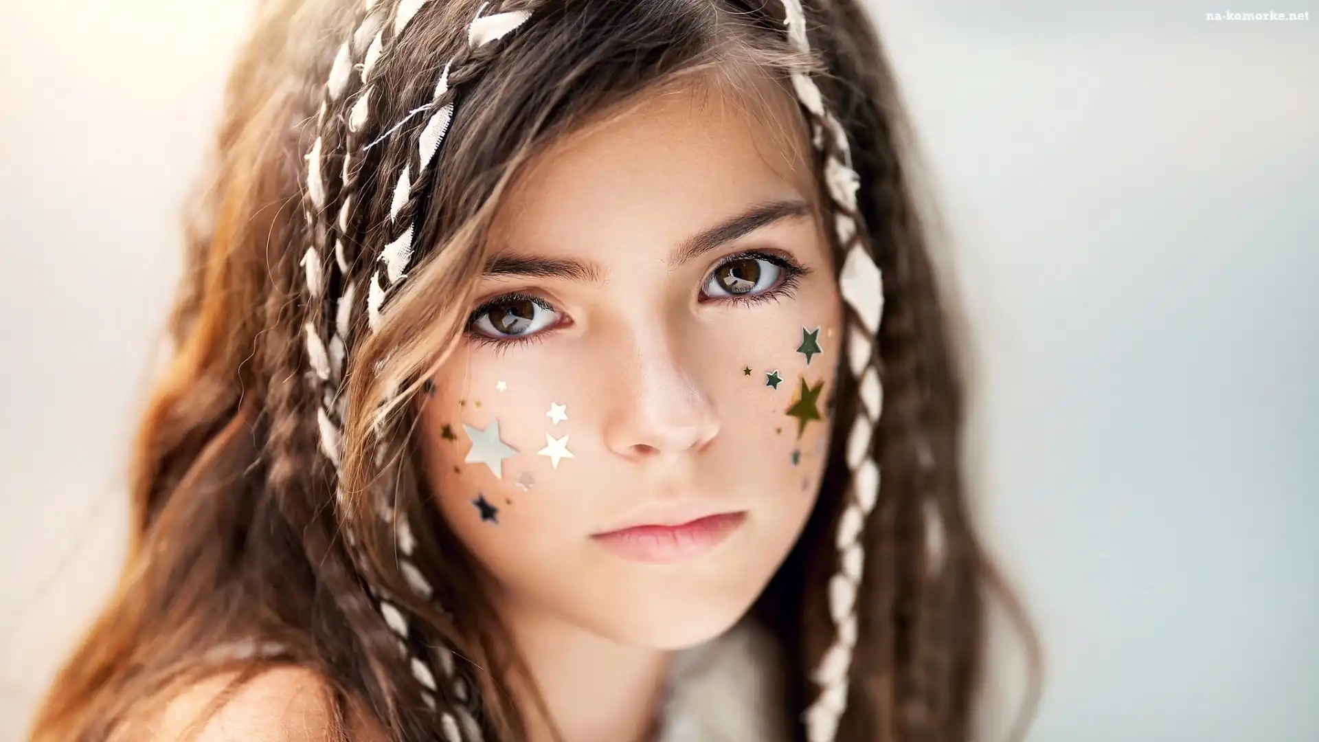 Dziewczyna, Gwiazdki, Makijaż, Warkoczyki na Komórkę
