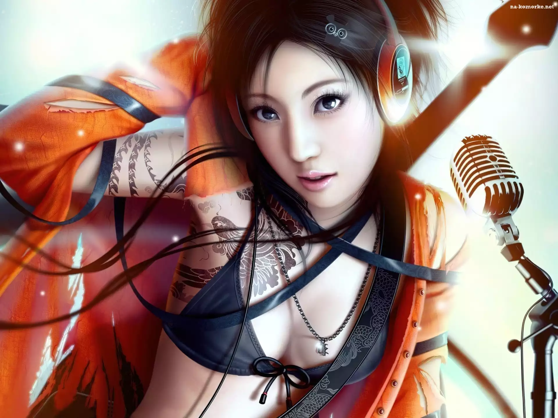 Dziewczyna, Tatuaż, Mikrofon, Słuchawki na Komórkę