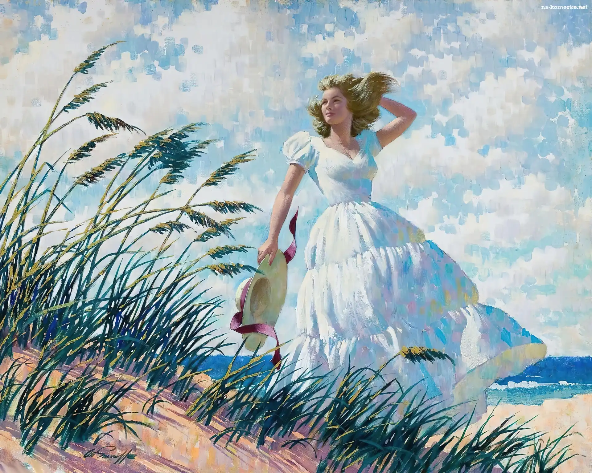 Dziewczyna, Wydmy, Morze, Plaża na Komórkę